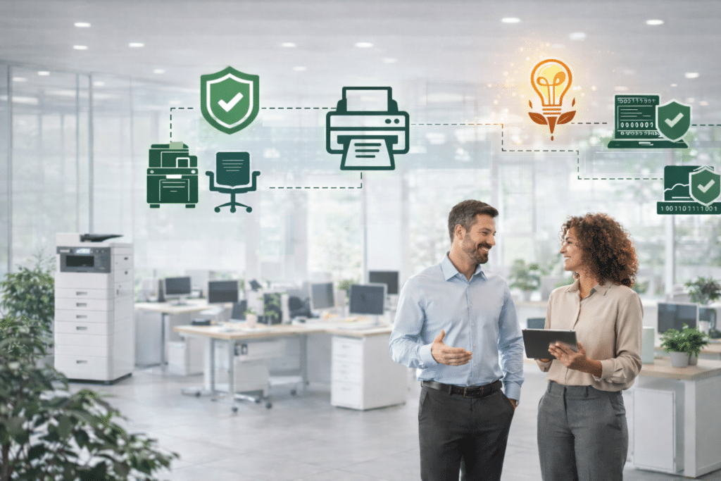 Lo facciamo affiancando il cliente nella scelta di soluzioni integrate per l’ufficio – dall’informatica e la sicurezza alle telecomunicazioni e alla stampa gestita, fino alle forniture e alla progettazione degli spazi di lavoro – mettendo al centro affidabilità, innovazione e attenzione al cliente.